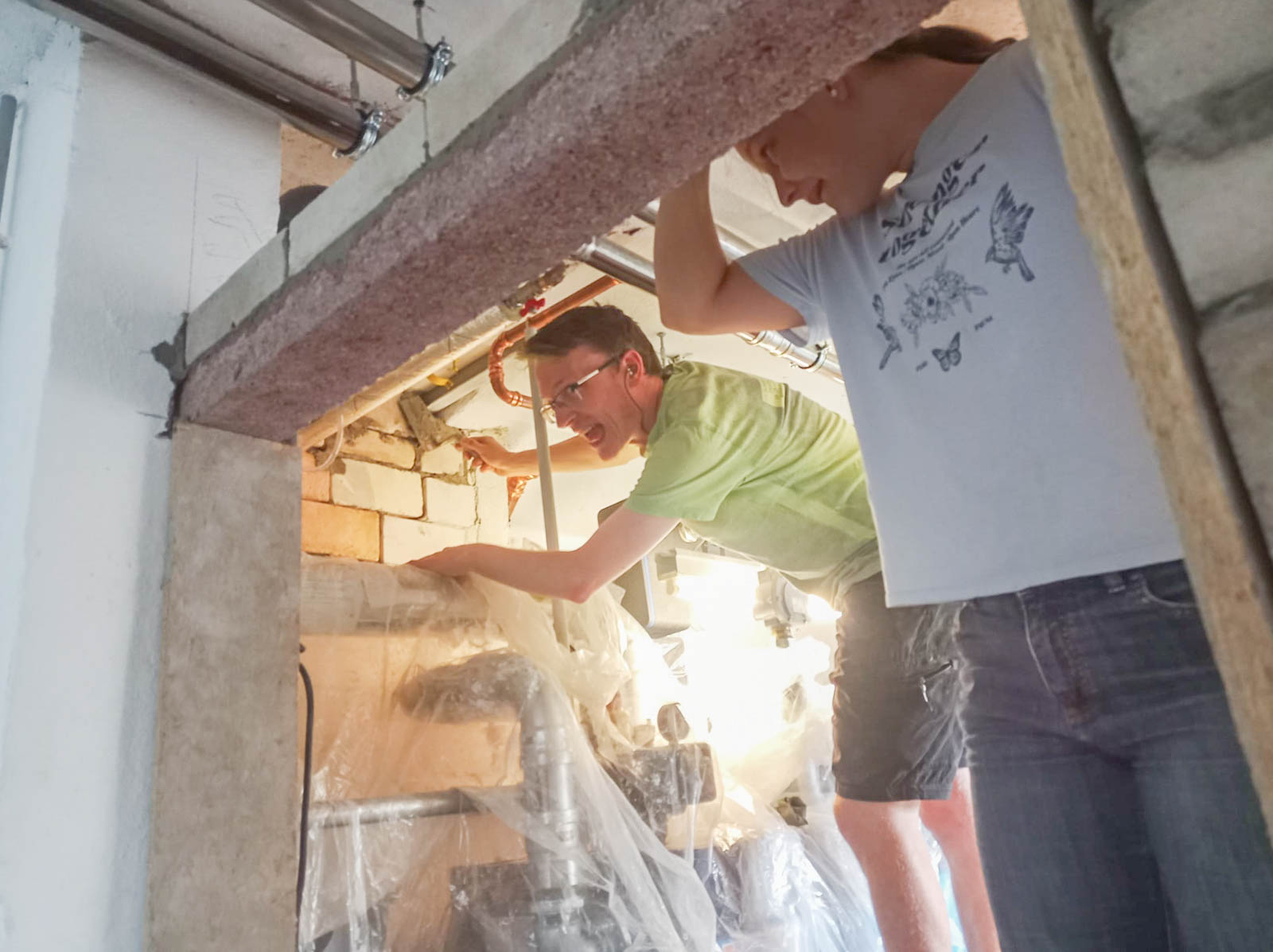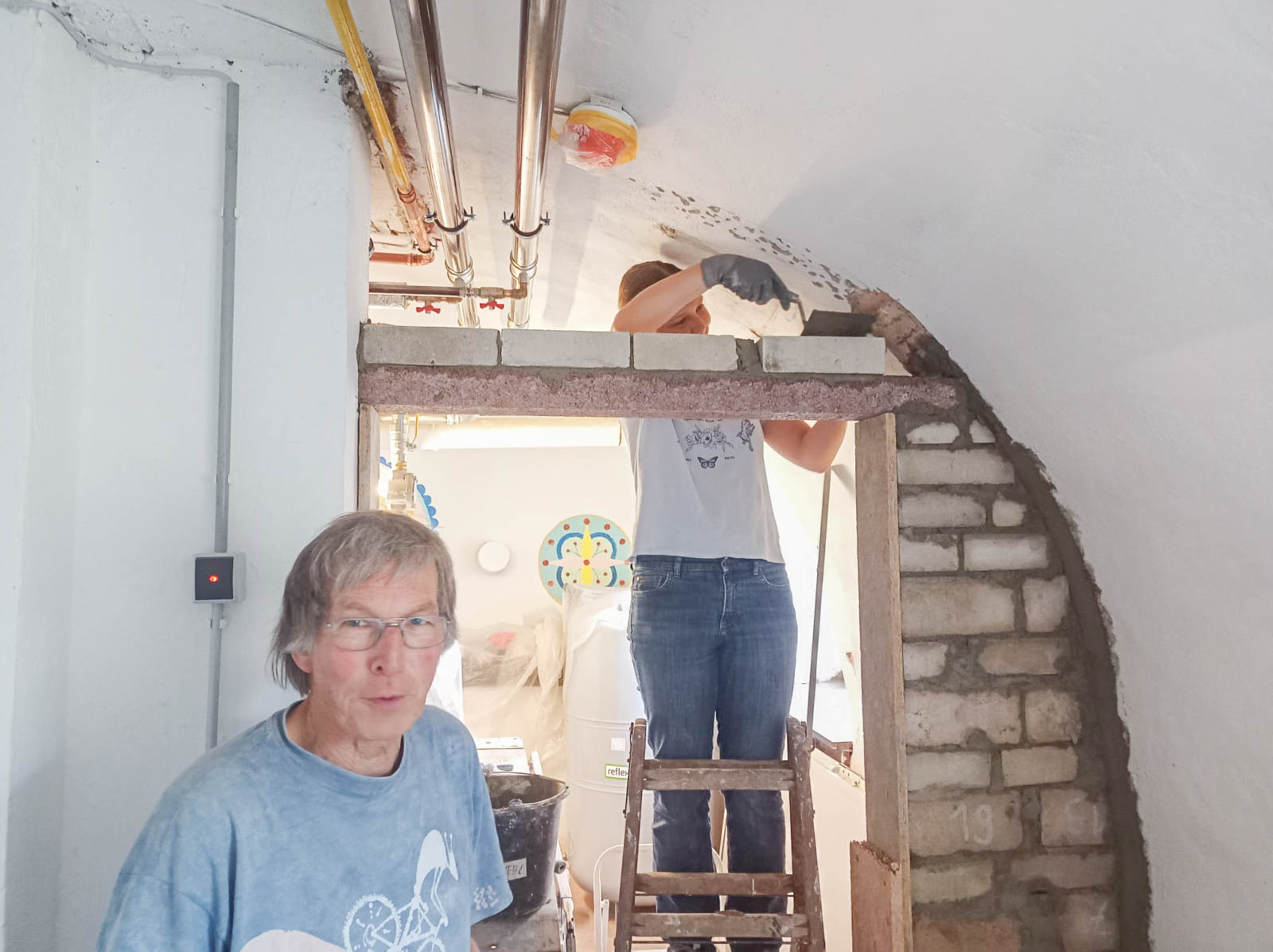Trotz kleiner Gruppengrößewurde, mit viel Spaß an der Arbeit, einiges in der Lichtenburg erledigt. Im Heizungskeller wurde eine Wand gemauert, mit passgenauer Öffnung für die neue Tür zum Heizungskessel. An verschiedenen Stellen im Haus wurden die freiliegenden Heizungsrohre fein säuberlich isoliert. Im gesamten ersten und zweiten Obergeschoss wurden alle Rauchmelder mit Acryl abgedichtet, um das Eindringen von Staub von der Decke und das damit verbundene Auslösen des Feueralarms, zu verhindern. Ebenso wurde bei kleinen Vorbereitungen für das Café mit Trödel geholfen, welcher am Sonntag bei bestem Wetter stattfand. Und natürlich konnten wieder viele schöne Momente bei den gemeinsamen Mahlzeiten und dem Lagerfeuer geteilt werden.